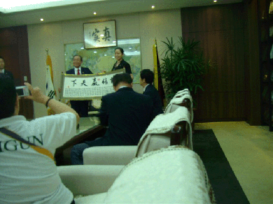在大田總部的接見(jiàn)大廳,李相福會(huì)長(zhǎng)對(duì)訪問(wèn)團(tuán)表示熱烈的歡迎。他特別感謝中國(guó)優(yōu)秀美健事業(yè)者和優(yōu)秀美健顧客對(duì)中國(guó)美健做出的巨大貢獻(xiàn)。在觀看了美健宣傳影像后,全體訪問(wèn)者受到了極大的鼓舞和教育。中午,訪問(wèn)團(tuán)與李相福會(huì)長(zhǎng)共進(jìn)豐盛的午餐。