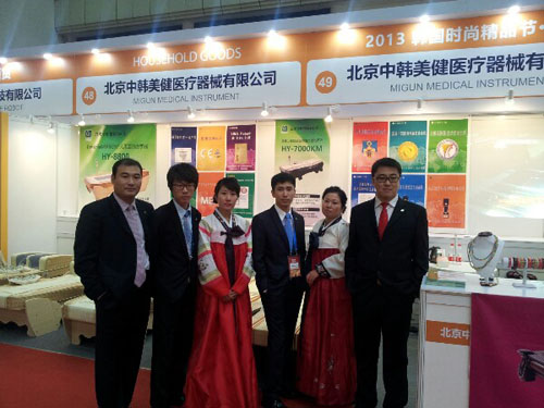 2013年10月31由韓國(guó)產(chǎn)業(yè)通商資源部、大韓貿(mào)易投資振興公社和陜西省商務(wù)廳共同主辦的 “韓國(guó)時(shí)尚精品節(jié)”在西安曲江國(guó)際會(huì)展中心隆重開幕,這次展會(huì)的展商包括現(xiàn)代汽車、LG生活健康、真露等在內(nèi)的韓國(guó)知名品牌,韓國(guó)(株)美健醫(yī)療器械公司應(yīng)邀參展,此次展會(huì)在我國(guó)西部地區(qū)再一次掀起了“韓潮”熱。!