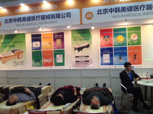 我們美健公司在這次展會(huì)中展示了 “美健溫?zé)嶂委熎骱偷诎舜贇q石墊子” 顧客紛紛詢問(wèn)并嘗試機(jī)器的效果,無(wú)不稱贊產(chǎn)品性能好,體驗(yàn)效果好。顧客體驗(yàn)的隊(duì)伍排起了長(zhǎng)龍。同時(shí),也有很多預(yù)約好的商家咨詢、洽談如何運(yùn)作我們的產(chǎn)品,如何取得我們產(chǎn)品的經(jīng)營(yíng)權(quán), 我公司銷售人員詳 細(xì)的做了解說(shuō),也為我們開拓西北市場(chǎng)打好了鋪墊,做好了準(zhǔn)備。